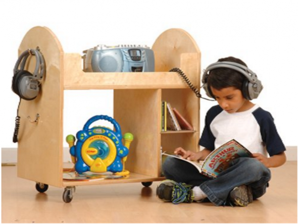 一个大的听力图书馆是理想的。如果你的学校预算不允许,从图书馆借一些有声书,放在你的听力中心。有些老师甚至在对着全班大声朗读时把自己的声音录下来,然后把录音放进监听中心。