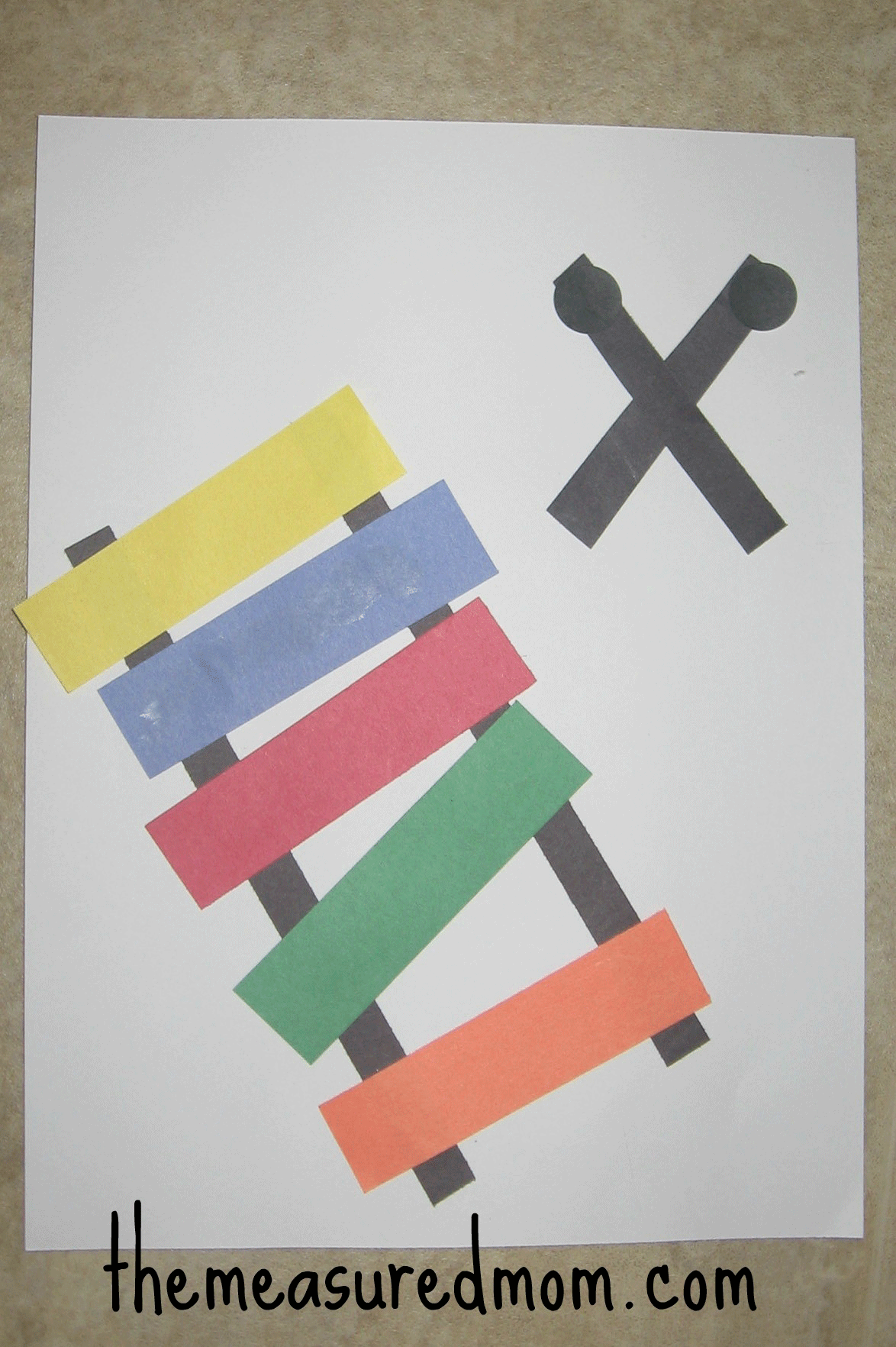我们在Pinterest上看到了一个可爱的想法——我的三个喜欢组装木琴。我们用圆形的办公室贴纸做木槌。这个想法来自公主和小孩。