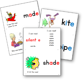 介绍沉默e的概念 - 也被称为“魔法e,”“偷偷摸摸的e,”或“bossy e” - 我印刷了一个简单的词,从这个读妈妈的读物龙一包. 我的四个发现和读短元音词;然后我帮他找到每个单词对应的长元音单词。