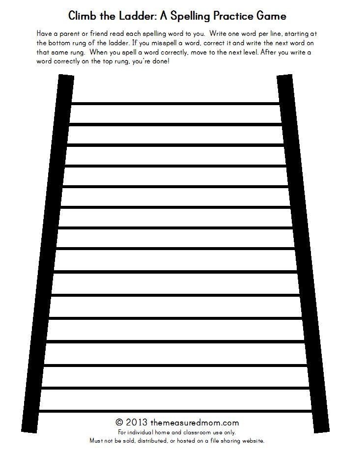 1.从你孩子的单词表中读出一个拼写单词。她应该把这个字写在梯子的最下面一级。