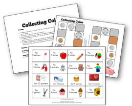 打印我的免费硬币图这里并与您的孩子一起使用它。给他一个小少数硬币,让他排队每行的硬币。根据您的孩子的能力,提出这样的问题: