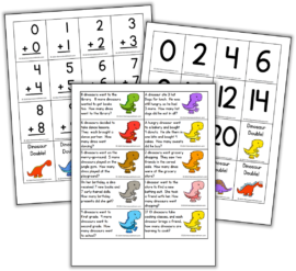 如果您的孩子绘制了两个恐龙双卡,那么他可以将双打事实命名为答案。