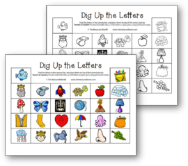 我设计了一个页面,为每个字母表的每个字母都有一张图片,并使网格成为正确的尺寸,使其成为一个信瓷砖每个矩形都能装下。(如果你没有塑料瓷砖,你可以打印免费的信件瓷砖从这个职位。)