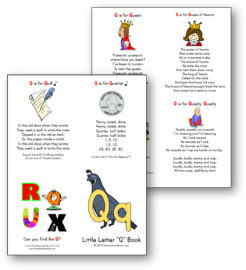 当我四岁半的时候,他只认识几个字母。因为他喜欢音乐,我决定制作这些可以印刷的押韵和歌曲的书来帮助他学习字母表。它工作!现在我将在字母表中与大家分享每一本书。是字母Q的时间了!