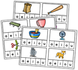 我四岁的孩子正在努力阅读CVC单词。最近,点击!我制作了这些CVC元音剪辑卡来帮助他听单词中间的声音。