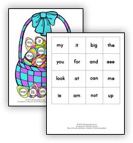 我的三个拿起每张卡,读它(必要时用我的帮助),并在复活节彩蛋上找到了匹配的单词。