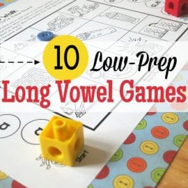 我们轮流掷骰子,读我们落在上面的字。游戏棋盘上混合了o和o-e两个简短的单词,所以孩子们在玩的时候真的需要思考模式。