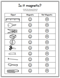 今天我分享了一个免费的可打印的磁铁工作表,当你的孩子测试日常物品的磁性时可以使用。