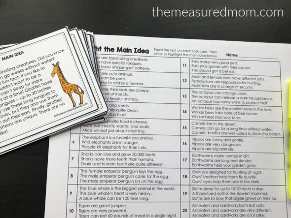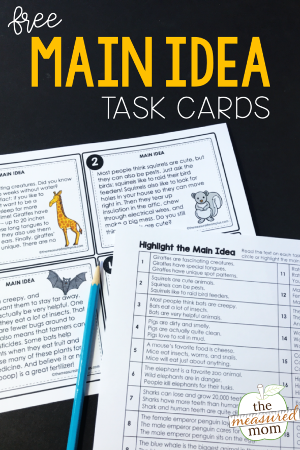 寻找主要思想并不总是练习最有趣的技能 - 但你的学生将热爱这套免费任务卡上的参与的主要思想段落!