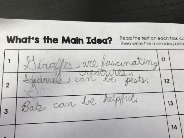 我的四年级学生(谁告诉我,他有一个艰难的时间),有更艰巨的任务。他不得不从主要想法列表中选择自己。
