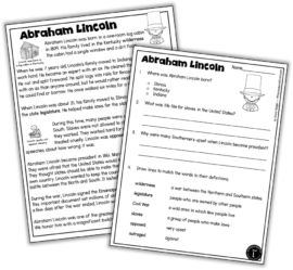 寻找一个亚伯拉罕·林肯的阅读理解活动?在这里你去!