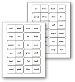 您是否认为这听起来更像是拼写游戏的阅读游戏?这两者都是。是什么让它成为拼写游戏的是,您的孩子真的需要注意到在下Domino之前了解那些拼写模式。如果您正在寻找一个将让您的孩子实际上写下这些单词的拼写游戏,请查看我的任何单词列表中的一些游戏拼写资源页面。