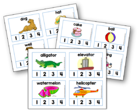 最后......如果你的孩子不能坐在桌子上,向他展示卡片,让他跳起音节!然后让他在继续前进之前剪辑音节计数。