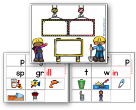 玩,只需打印“建筑垫”单词和一组卡片和图片。下载中的每个页面都有五张图片和五个开始字母或特定单词系列的混合。