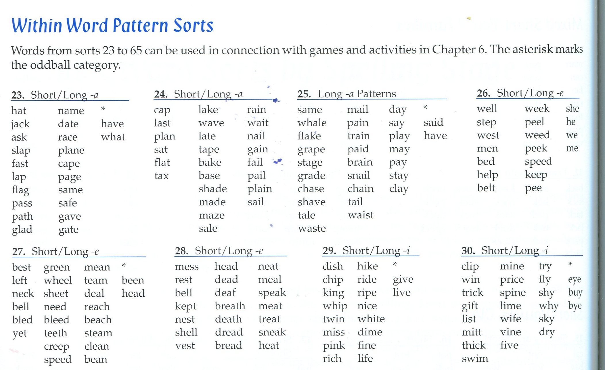 很抱歉延迟回答你的问题,jaime!如果你的女儿正在使用长元音模式,你会发现这本书有用:https://www.amazon.com/words-their-way-pattern-pellers/dp/013514843x.