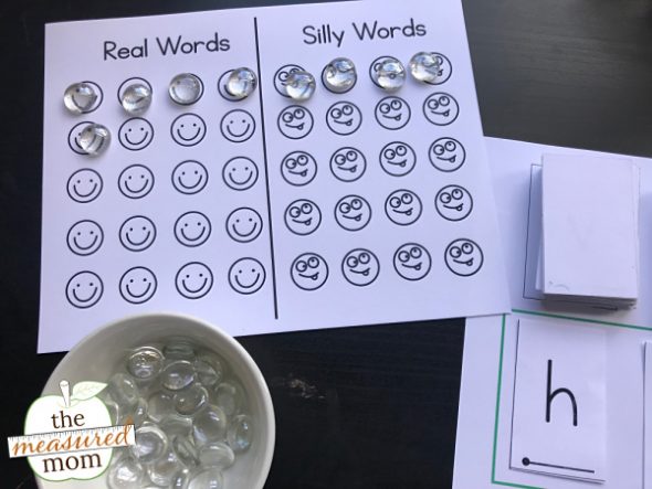 我们做了一些不同的事情。我们先单独做每个音,然后再单独做第一个音,然后是最后两个音(onset和rime),最后三个音一起做。这也有助于学习单词族和押韵。就像你的女儿一样,我的学生绝对喜欢确定一个单词是真的还是无意义的!....非常感谢混合卡!