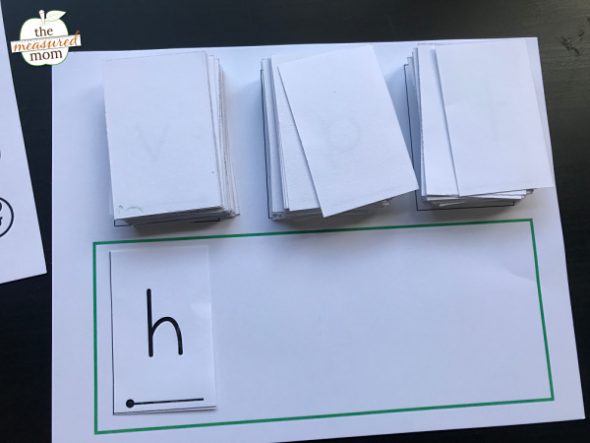 我创建了一组卡片——一组用于第一个声音,一组用于中间声音,一组用于结尾声音。第一张卡片都是CVC单词中使用的字母。中间的字母都是元音。最后的字母都是我们经常在CVC单词后面看到的字母(例如,你不会找到anh或者一个j在最后一堆卡片中)。