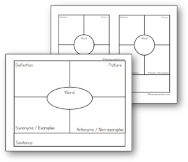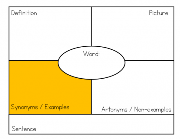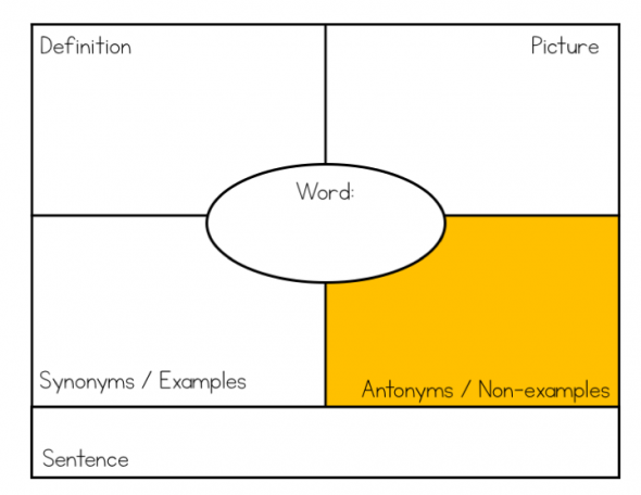 提示:您可能有学生在小组中工作,以查找同义词/示例和反义词/非示例。然后将整个类拉在一起编译一个主列表。作为一个组,为学生选择最佳两个同义词/示例和反义词/反义词,以便您在期刊中记录。