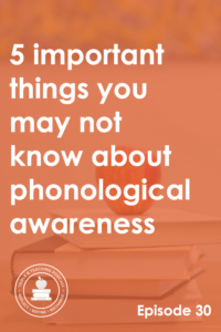让我们继续审查我们今天在播客中谈到的五件事;你可能不知道的五件事,但现在你知道,关于语音意识。第一件,它与拼音不同,因为语音意识和音素意识是口语技能,而声音是与书面文字和探坏单词有关的东西。二次,有发源改量的语音意识水平。我与您分享了该楼梯并谈到了普通读者获取这些技能的大致年龄范围。第三名,谈到预测阅读的未来成功,音素意识胜过所有人。这是Biggie!我们谈到了拼音意识的独特水平。我们讨论了隔离,混合,分割和大的一个,操纵。最后,音素意识是开发大型视线词汇的核心。 The reason for that is because when you have phonemic awareness, you are able to do orthographic mapping, this mental process in which you store words so that you can read them in the future effortlessly.