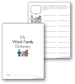 - 我们并不局限于——家庭。单词家族词典的页面是空白的,这样他和我就可以探索不同的单词家族,并将它们添加到活页夹中。