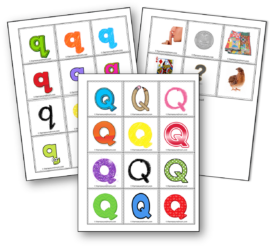 我们采用了“剪切-粘贴字母声音”活动.当她把图片粘在Q上时,我们给它们命名。