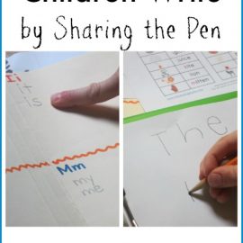 你会注意到他还没有正确的铅笔掌握。我们不强调它,但我开始轻轻介绍正确的掌握。你在图片中看到的是我开始使用的地方的地方改进的三脚架掌握。(我的五个以1 1/2岁开始正确掌握一支铅笔,所以这对我来说很有意思!)