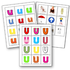 这是一个有趣的词汇建设者!只需在本帖子末尾打印字母U图片卡。呼唤每张照片并邀请您的孩子用扑克筹码覆盖图片。