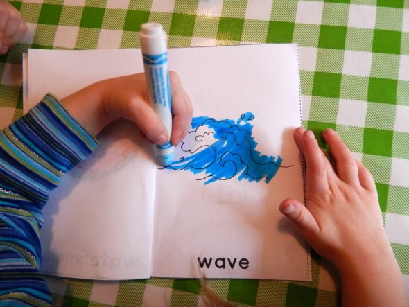 我们开始了从免费的可打印书学习字母表.我女儿把画涂上颜色后,我们给它们起了名字。