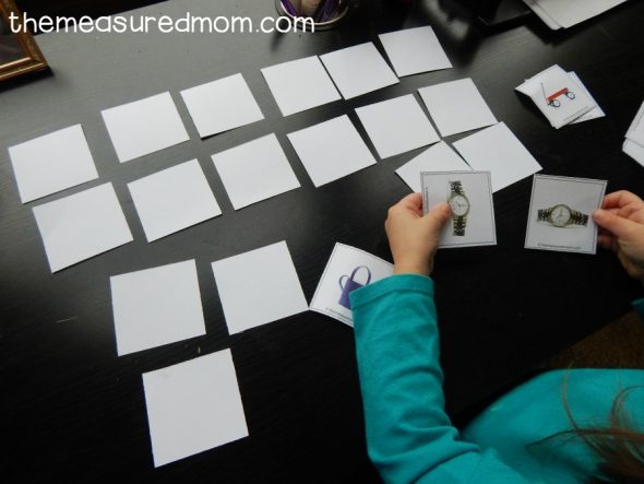 我打印了两套照片卡,你可以在这篇文章的最后得到。我那蹒跚学步的孩子喜欢找火柴,然后把它们放在一边。