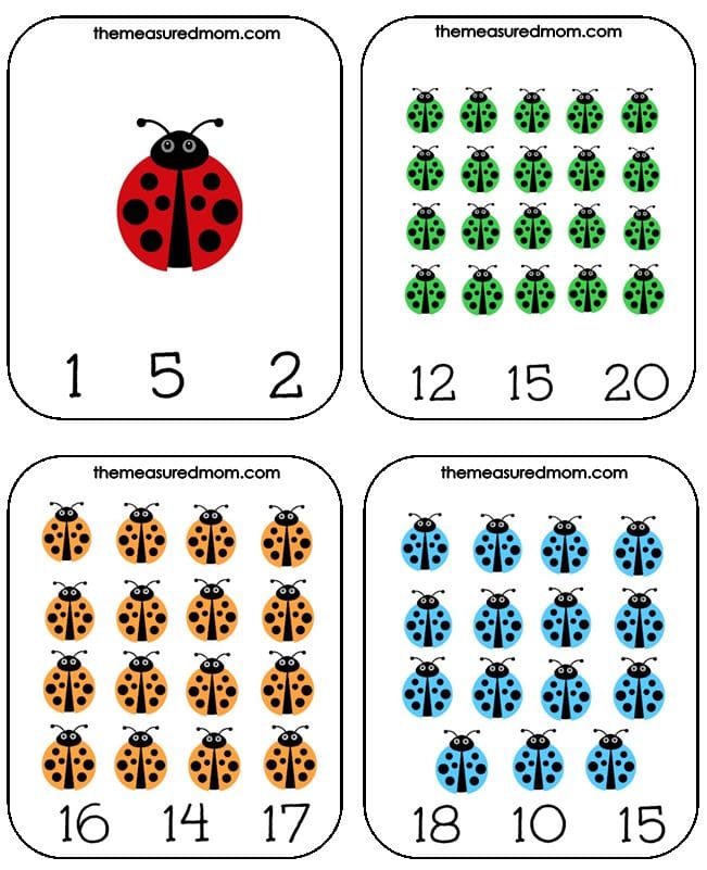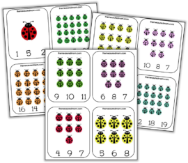 现在是四月,我们家的雪快融化了!是时候学习更多春季主题的数学了。及时地,当我们学习字母l的时候,这里有一些瓢虫计数和剪贴卡:这是学龄前儿童可以打印的计数活动。(这些图片是用Picmonkey创建的。)