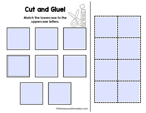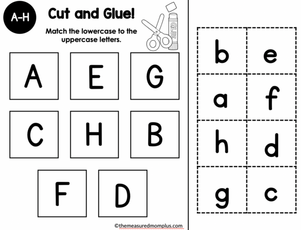 打印这些简单的切割和粘贴工作表,为学生练习与其相应的大写字母相匹配。