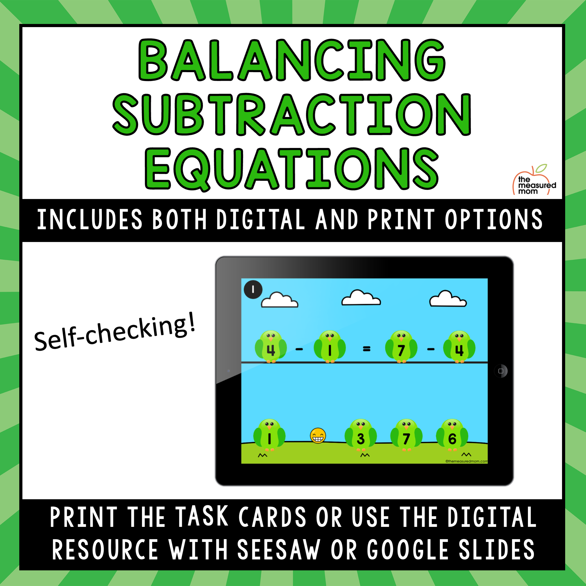 您是否使用IPADS,Chromebook或Desktop Computers与您的学习者?然后,您将喜欢这种无打印活动来平衡减法方程式!