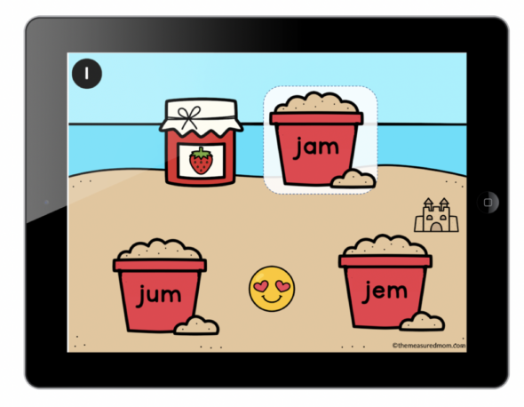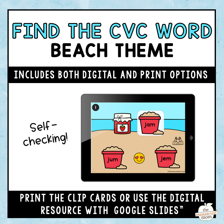 你是用ipad、chromebook还是台式电脑来教你的学生?然后你会喜欢这个无印刷的CVC字活动与海滩主题!