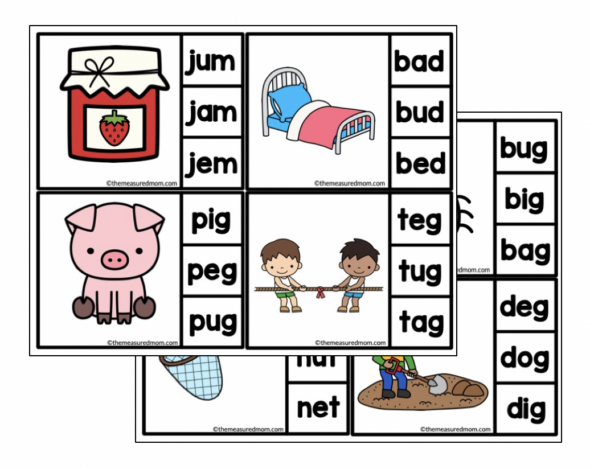 学生将说出图片的名称,并识别CVC单词的正确拼写。幻灯片在自我检查。