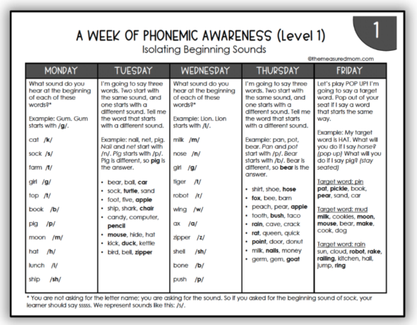 打印教师和学生的页面,对每个学习者进行一对一的评估,以帮助你知道该如何培养孩子的音位意识。