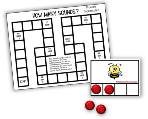 使用这个游戏的学生谁准备好了一个高级水平的音素意识:音素操作。当它们落在一幅图画上时,它们会说出图画的名字,当一个新字母的发音加到这个单词的开头或结尾时,它们就会说出这个单词的名字。