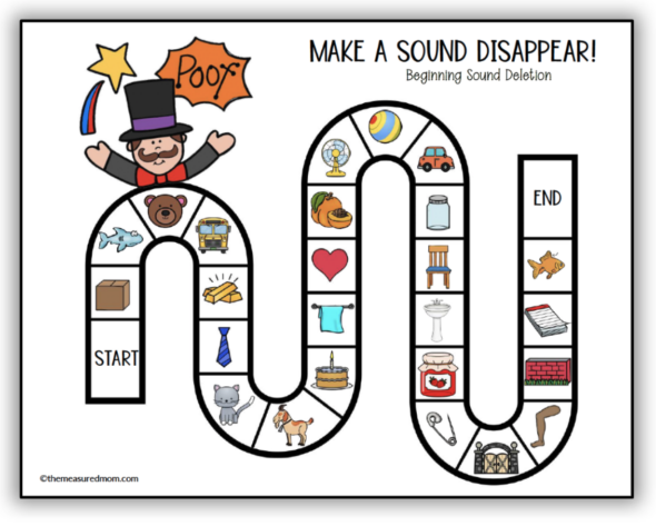 使用这个游戏的学生谁准备好了一个高级水平的音素意识:音素操作。当它们落在一张图片上时,它们会说出图片的名字,当第一个(或最后一个)音素被删除时,它们就会说出图片的名字。