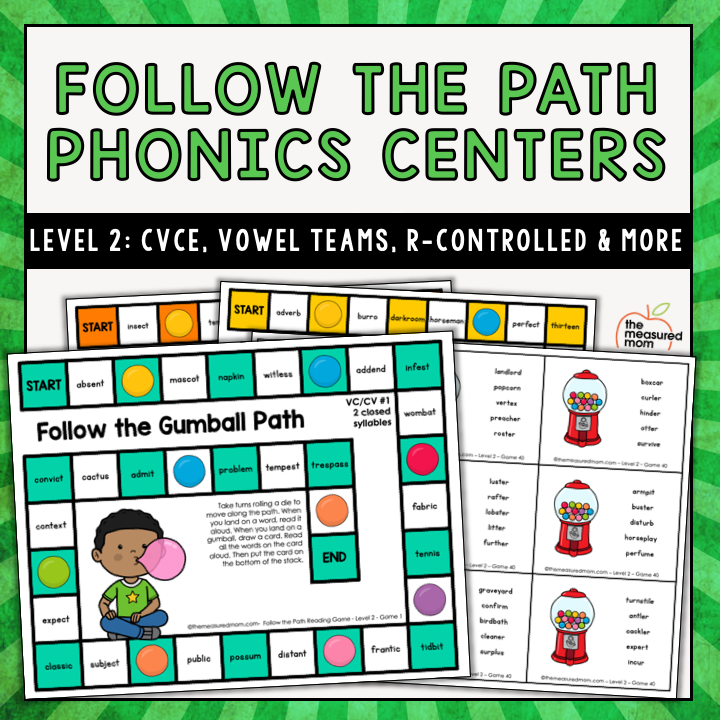 当您购买时,您将收到40个游戏的CVCE单词,元音队,r控制的元音,和更多。