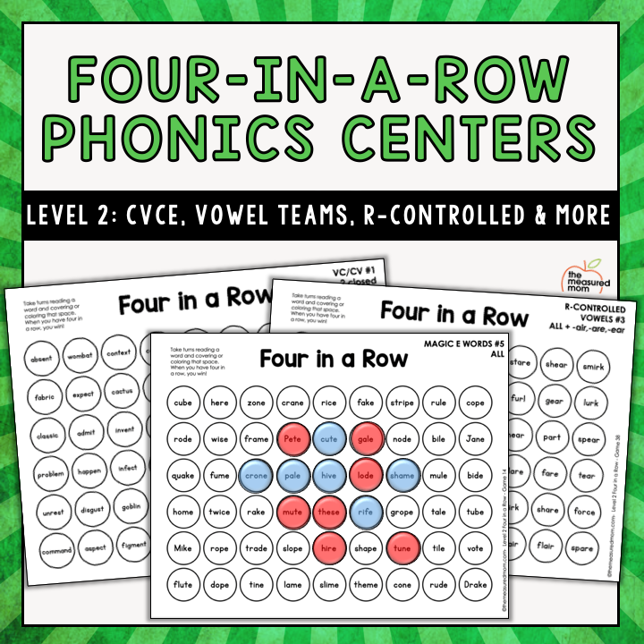 我们的四连游戏是一种简单、无需准备的方法来提高解码技能。孩子们喜欢它们!