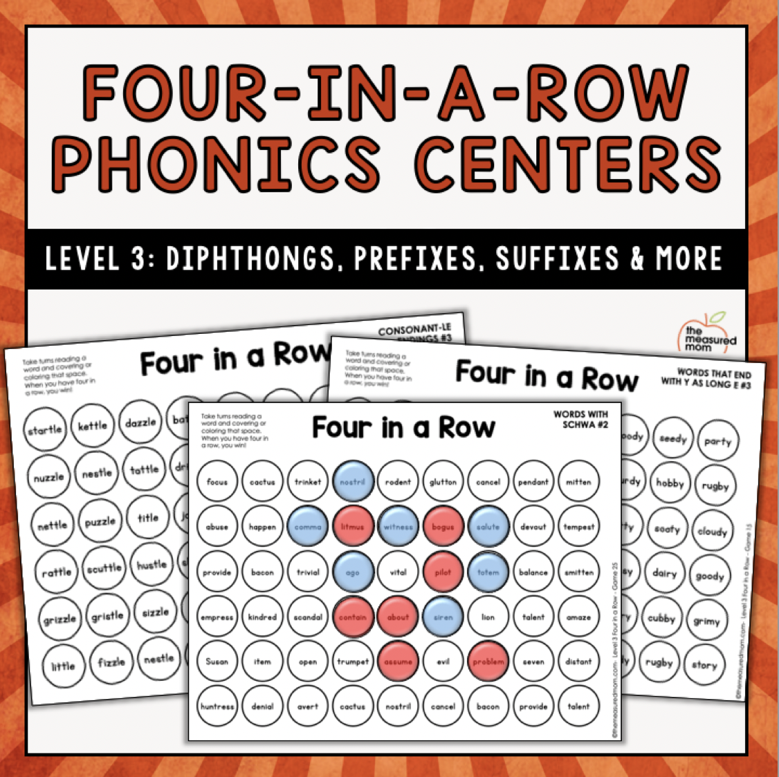 我们的四进一排游戏是一种简单的、无需准备的方法来提高解码技能。孩子们喜欢他们!