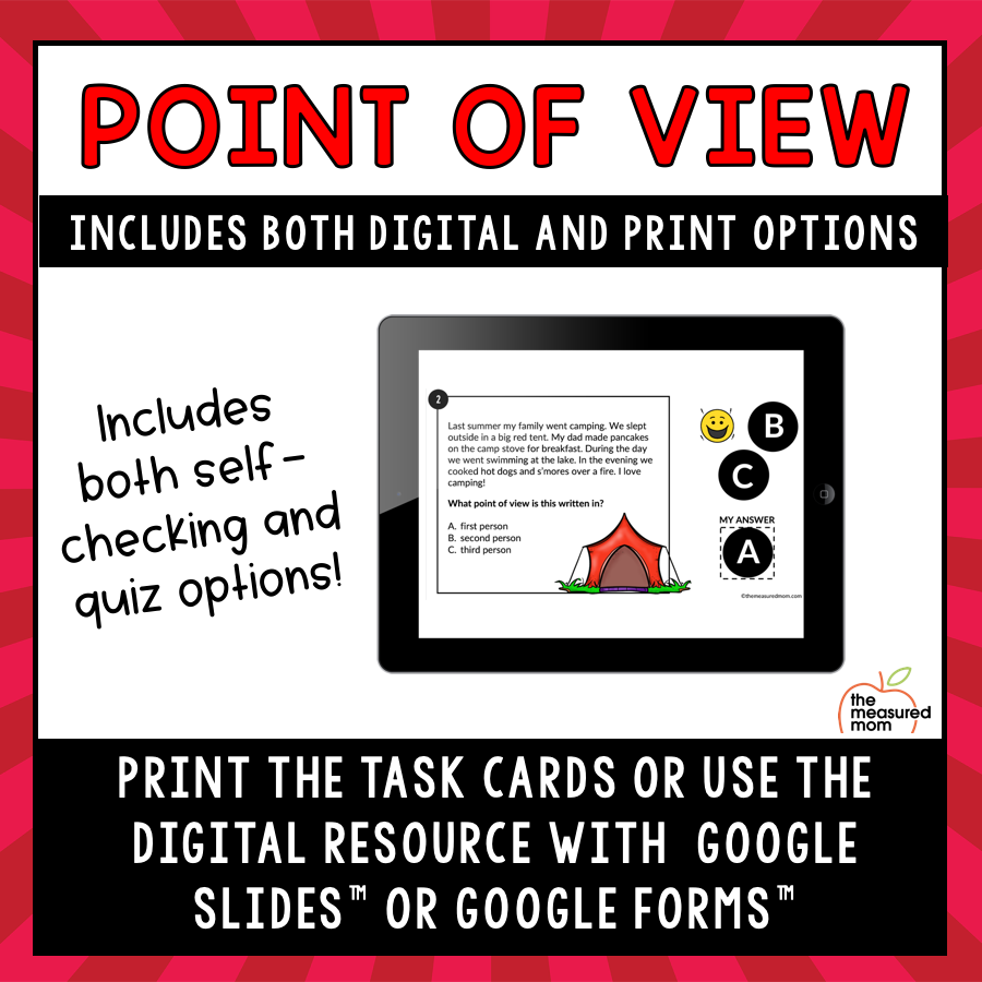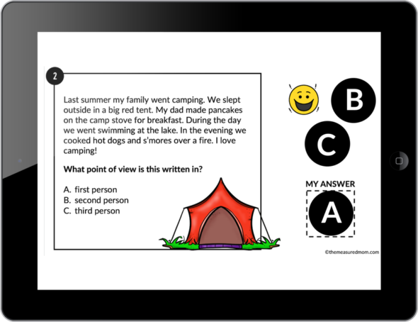学生将在谷歌幻灯片演示或谷歌表格中的小测验中确定观点(第一、第二或第三人称)。