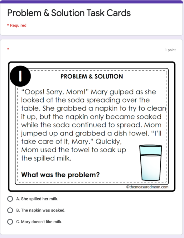 学生将在谷歌幻灯片演示或谷歌表格中的小测验中找出问题和解决方案。