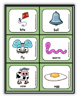 将卡片和一叠记录纸放在中间。学生应该看每一张卡片,拍单词的音节,并在录音纸上给正确的苹果涂上颜色。