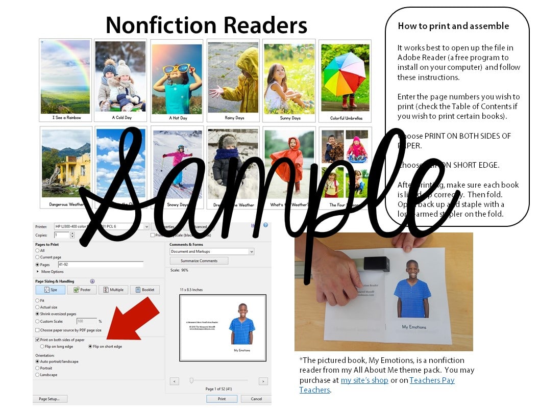 这些非小说读者非常适合学龄前儿童和幼儿园!用这一收集12本书教导印刷和视线词的概念。它们很容易打印和组装!