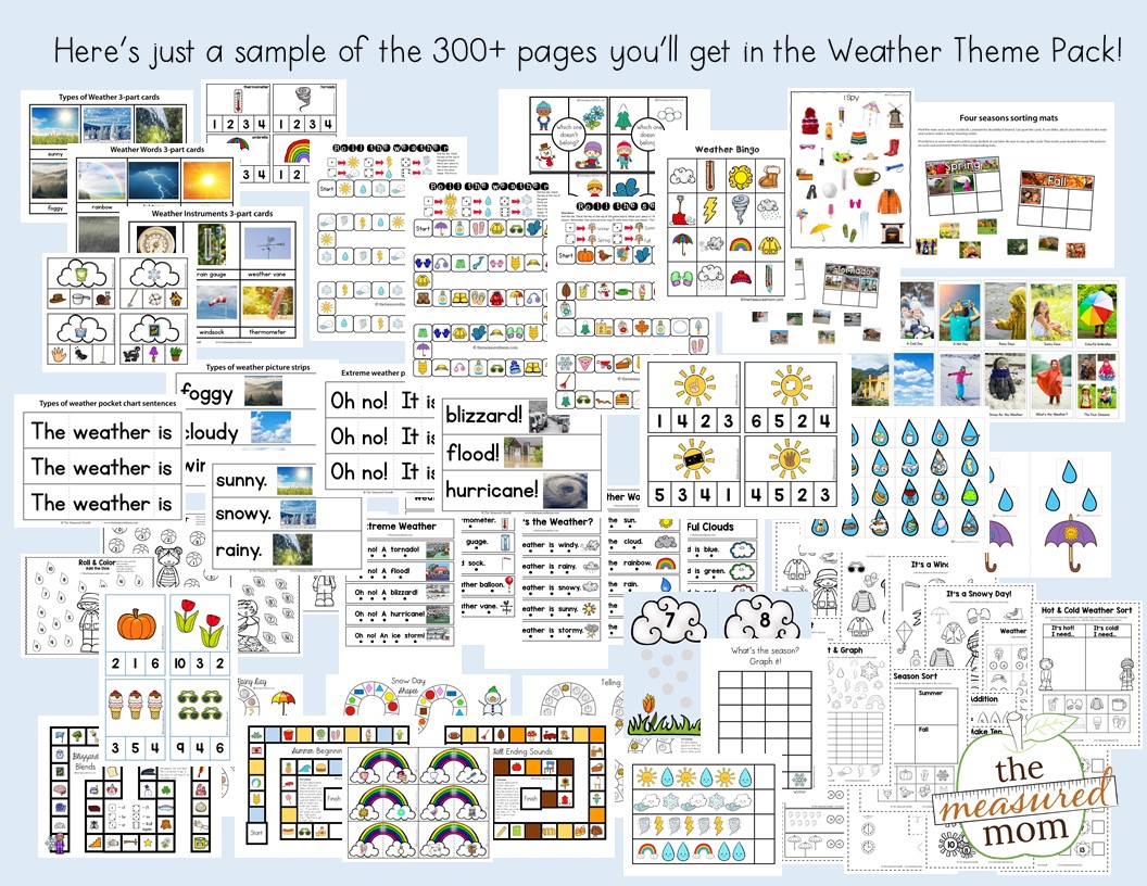 当你购买时,你会得到两个数字文件有超过300页的活动,教一个天气和季节的主题学龄前儿童和幼儿园。