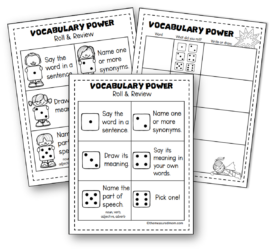 - 你可能会让学生们来掷骰子两次每个单词做两个活动。这样一来,如果他们得到一个简单的(例如命名词性),他们还必须为一个单词做一个更具挑战性的活动。