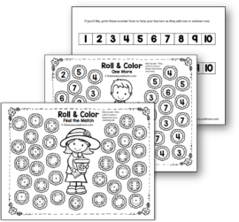 今天我正在分享我的免费样品学龄前和幼儿园的春天主题ñ。这是一组滚动和颜色游戏,可以帮助年轻学习者在模具上匹配号码,添加一个,并减去一个。