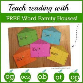 看看这套巨型34个免费短元音词家庭房屋!