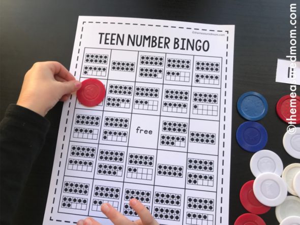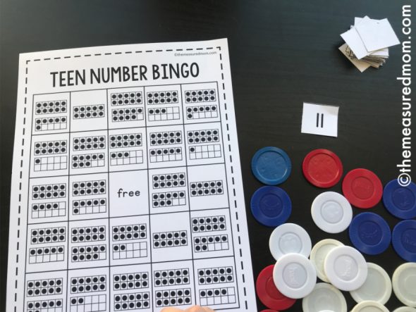 我也让简单的自制跟随道路游戏。我在一张纸上绘制了一条路径并将其分成空格。在每个空间上,我从11-20写一个数字。当我们轮流沿着死亡的路径时,她必须命名它。
