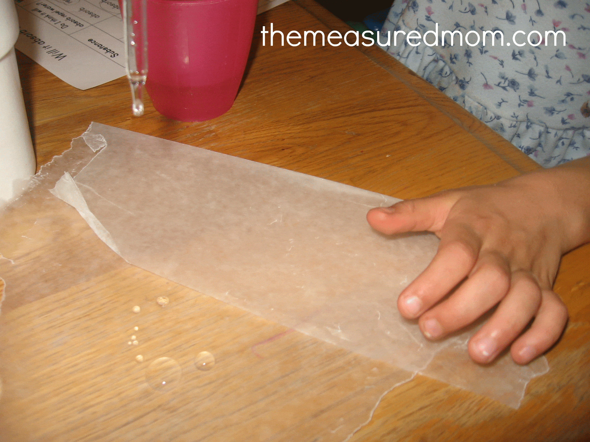 我的六兄弟需要一些一对一的时间,所以当她的兄弟们在一起玩的时候(没有打架——太棒了!),我们拿了一个滴管和一堆可以吸水或排水的东西。By the end of the experiment I think she had finally learned not to pronounce it “reppel.” You can read more about this fun experiment over at不只是可爱.